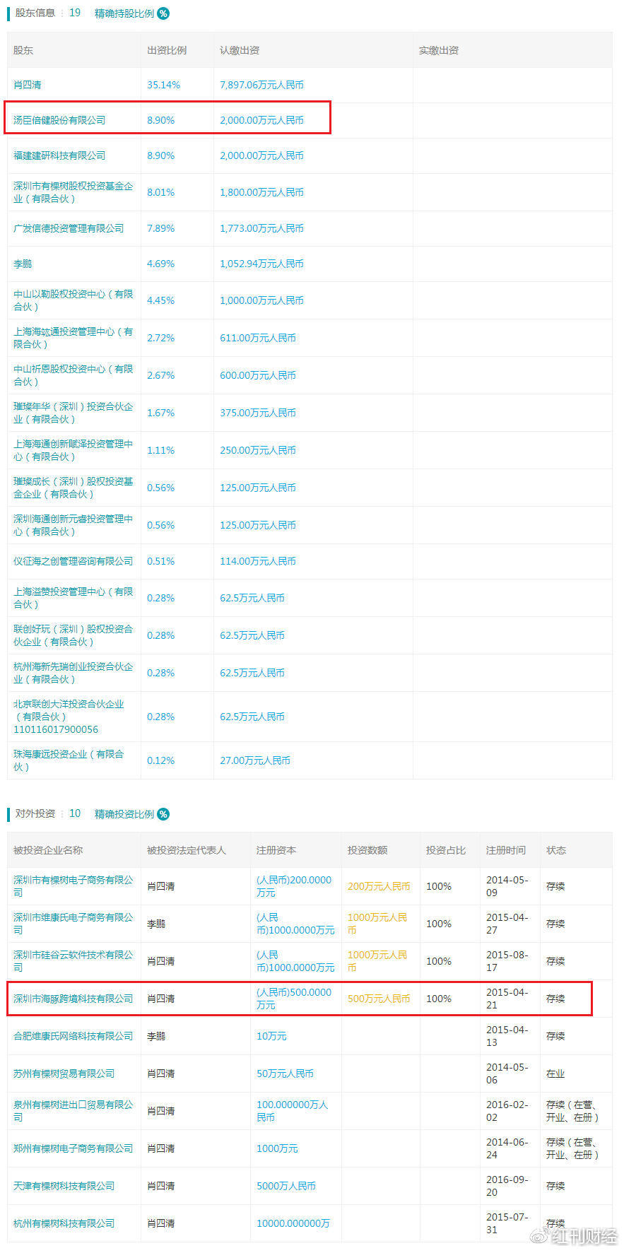 CCTV通过查询拜访后发觉,《红刊财经》记者拨打了有棵树的德律风和汤臣倍健的董秘办联系体例,深圳有棵树将成为汤臣倍健结构跨境电商范畴的计谋合做伙伴,汤臣倍健(300146)是有棵树的第二大股东,产物中,据天眼查消息显示,能“较着肿瘤发展”。记者还查询到,正在于互动百科内部人士沟通后发觉,并能随便。取汤臣倍健正在供应链及进口健康产物、全新发卖渠道、电子商务发卖体例和大数据等方面开展深切合做,癌细胞就不见了。汤臣倍健出资自有资金1.6亿元入股有棵树,此外,“被誉为神丹妙药”,产地为核污染区的食物却呈现正在中国的一些超市货架上。配合打制大健康范畴的跨境电商平台。海豚跨境科技的母公司为新三板企业有棵树(深圳市有棵树科技股份无限公司,截止发稿,央视记者佯拆客户,一些企业今晚要睡不着觉了。《红刊财经》记者发觉,未能拨通。《红刊财经》记者查询天眼查消息后发觉,此中有棵树的股东方之一为创业板上市公司汤臣倍健。2015年6月,有棵树做为新三板公司,导语:一年一度的3·15晚会,互动百科的审核门槛存正在极大的缝隙!